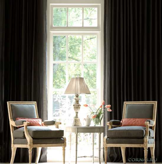 Тёмные тона портьер на окнах не только визуально уменьшат пространство помещения, но и могут отрицательно отразиться на эмоциональном состоянии людей. Поэтому использовать такие тона в комнате общего пользования не рекомендуется.