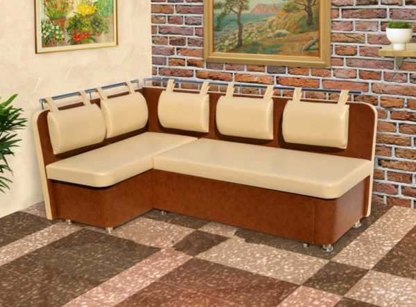 Диван угловой бежевого цвета с коричневыми вставками