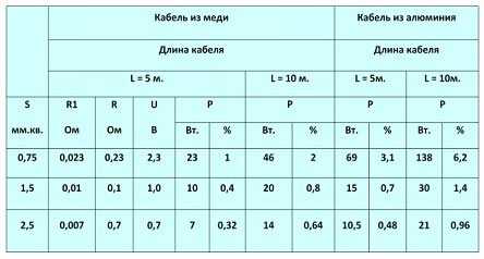 Переходное сопротивление одного контакта еще в новой модели должно быть не более 0,05Ом. В процессе эксплуатации оно может ухудшиться до 0,1Ом.То есть, при номинальной нагрузке в 10А, только на одних контактах «вилка-розетка» можно терять в мощности до 10Вт каждый час. Вот сводные данные по потерям в напряжении и мощности в удлинителях в зависимости от длины, материала и сечения жил.