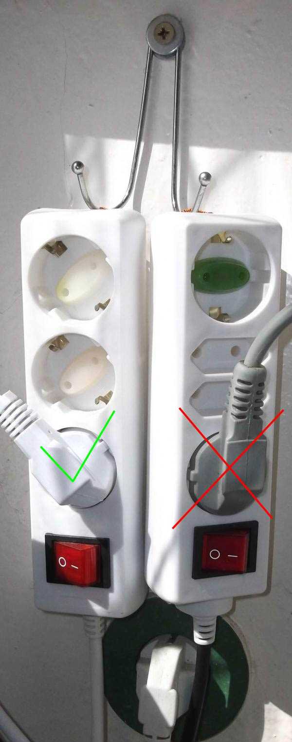 Еще обращайте внимание на расположение втычных контактов розеток. Они должны быть сделаны так, чтобы вилка подключаемого аппарата втыкалась по диагонали или наискось, а не вертикально.
