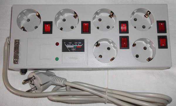 Один из самых распространенных типов – это так называемый компьютерный удлинитель или сетевой фильтр. Он имеет в корпусе встроенный выключатель, которым можно отключать питание всех розеток.