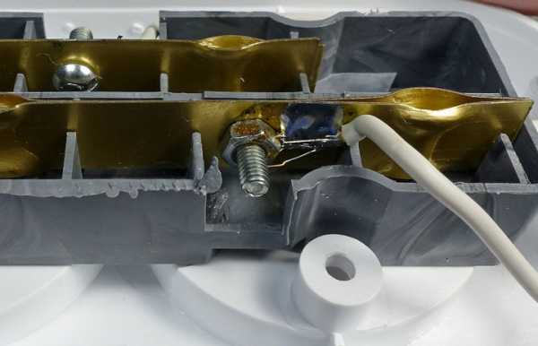 Для этого раскручиваете винты на обратной стороне и снимаете крышку. Контактные площадки розеток переноски должны быть выполнены из латунных пластин.