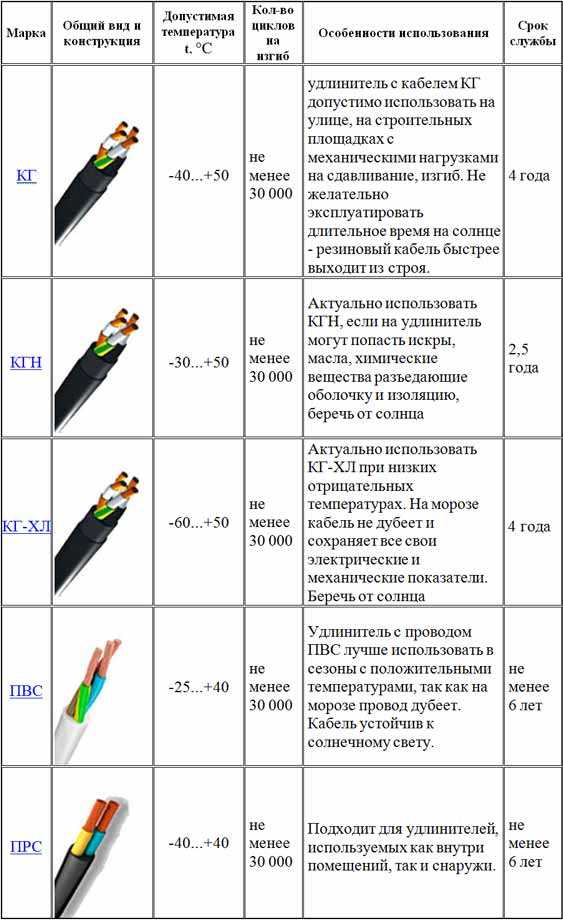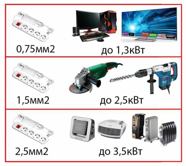 Сечение проводов в кабеле удлинителя имеют немаловажное значение.