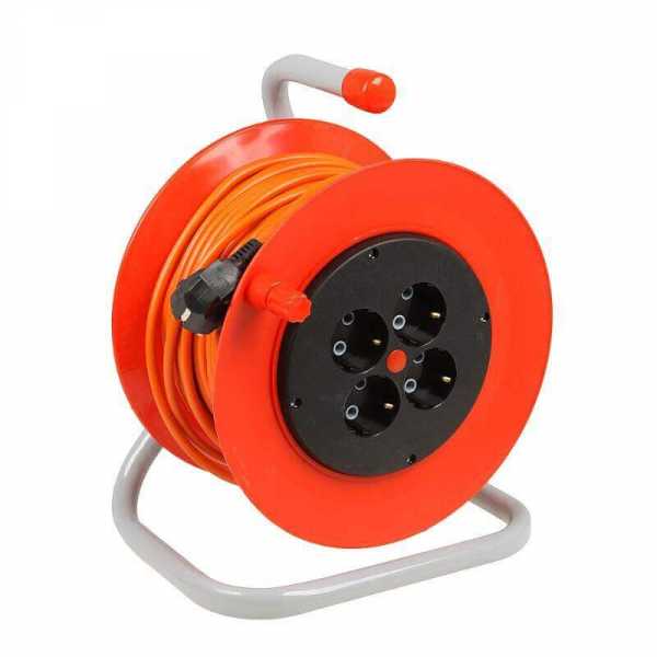 Такой же вариант будет отличным решением для дачи, если нужно подключить электрический триммер или газонокосилку. Но учтите, что нельзя перегружать удлинители на катушке, потому что в такой конструкции провод не может полноценно охлаждаться, когда он смотан и его изоляция может поплыть.