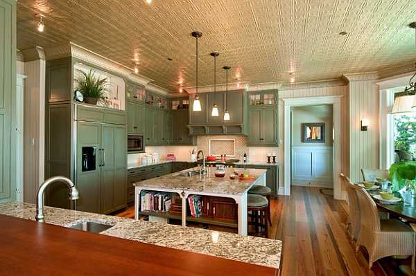 - Оттенок потолка и напольного покрытия также должен подходить по цвету с кухонным гарнитуром и стенами.