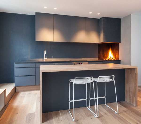 - Темно серые стены хорошо выделят белую мебель. Для того, чтобы еще раз выделить и гарнитур и стены, пол нужно оформить в теплых тонах.