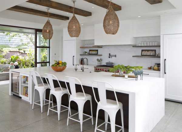 Не отказывайтесь сразу от этого варианта, ведь простой, но привлекательный цвет может стать отличным фоном для любого цвета-акцента, который вы выберете. К тому же белый сочетается с любым оттенком старого рабочего фартука, пола и стен, так что вы можете минимизировать затраты на ремонт.