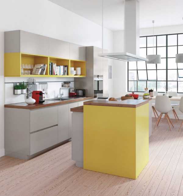 - Недостаточно освещенные и очень мрачные кухни «развеселит» желтый кухонный гарнитур.