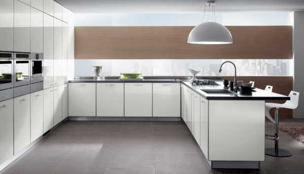 - Тщательно подбирайте искусственное освещение к однотонному интерьеру, чтобы сделать его более интересным. Естественные для солнечного дня переходы света и тени исчезают к вечеру, и дизайн кухни может стать скучным при включении равномерно расположенных верхних ламп.