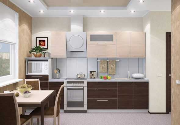 Выбирайте в качестве универсальный белый цвет, пастельные тона или любую светлую гамму. Они освежают, визуально приподнимают потолок, расширяют и удлиняют помещение. Только помните, что холодная палитра нежелательна для темных кухонь, расположенных на северной стороне.