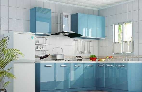 - Голубой – нежный и прохладный цвет, который рекомендуют выбирать для чрезмерно теплых помещений – южных и юго-западных, особенно квартир, расположенных на верхних этажах многоэтажных домов. Здесь кухни нагреваются настолько, что не помогают ни проветривание, ни вытяжка, ни кондиционер.