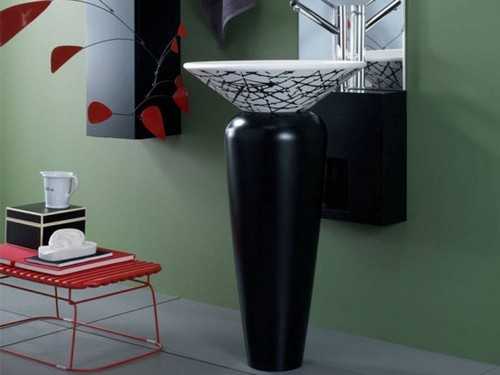 Сегодня можно купить умывальник с пьедесталом разнообразной формы, к примеру, это может быть расписанная узорами напольная ваза или цилиндр.