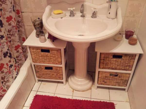 Какие бывают тумбы под раковину в ванную комнату. Подборка фото: