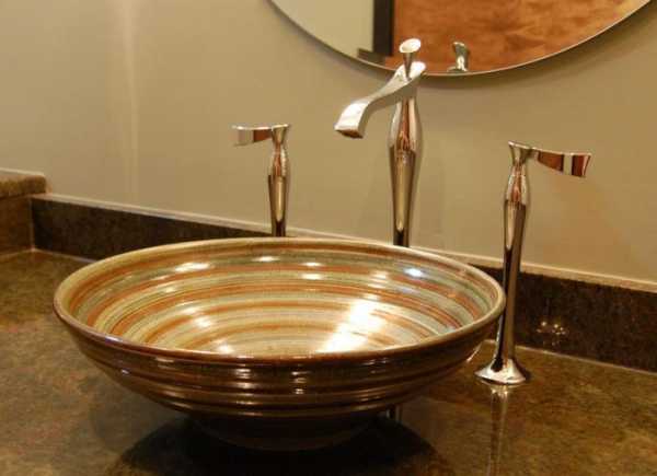 - Раковина-тазик. Обычно такие раковины изготавливают в форме куба, чаши или шара. Раковины такого типа следует устанавливать на ровные поверхности.