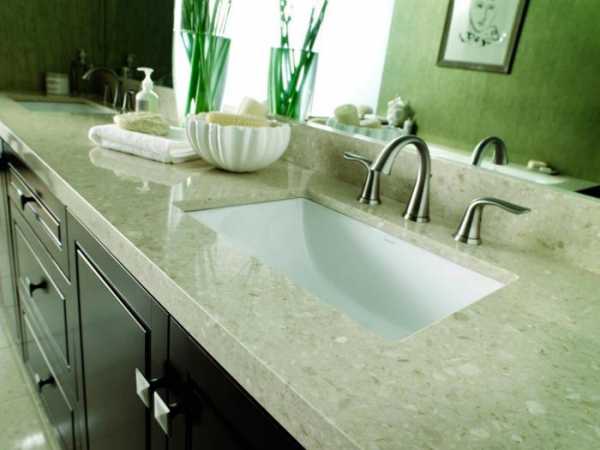 Есть три типа раковин, встроенных в столешницу в ванной комнате: