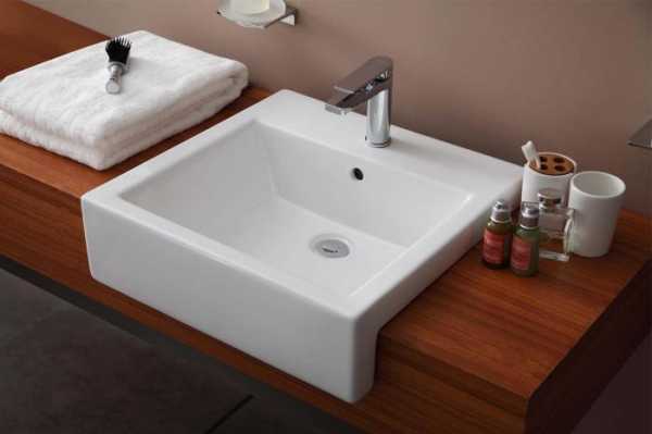 Встраиваемые раковины обладают привлекательным видом. Однако довольно крупные размеры зачастую усложняют их установку в небольших по площади ванных комнатах. Сегодня подобные встраиваемые раковины также выпускаются и для небольших помещений, поэтому при желании подобрать подходящий вариант можно всегда.