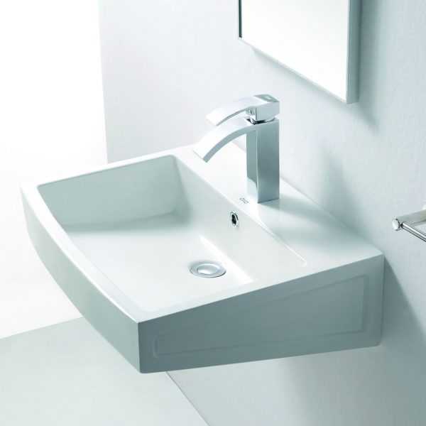 - Установка смесителя – на раковину либо стену, необходимо решить заранее. Это связано с тем, что некоторые модели раковин не оборудованы отверстиями для установки смесителя, а конструкция врезного смесителя напрямую зависит от формы раковины.
