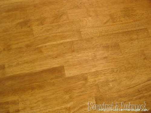 Затем столешницу промазывают клеем ПВА, покрывают ее тканью, после чего при помощи резинового валика начинают разглаживать материю, двигаясь от центра к краям. Примерно через 15 минут проклеивают ткань еще раз, оставляют до полного просыхания, при необходимости подравнивают края острым ножом или ножницами. После этого поверхность проклеивают еще 2-3 раза.