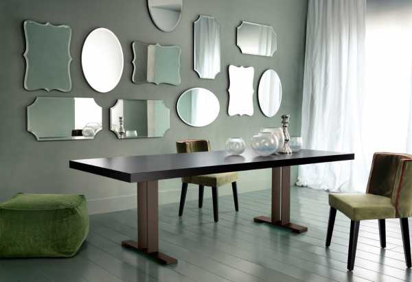 Популярным элементом декора считается коллаж из зеркал. Это могут абсолютно одинаковые элементы или же изделия, имеющие разную форму, габариты и стиль оформления. Немного креатива и композиция будет выглядеть элегантно, выгодно дополняя интерьер. Настенные зеркала красиво смотрятся в дополнении с картинами, часами, фото и прочим декором.