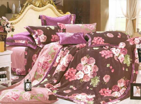 Секрет этой ткани – сочетание удивительно низкой цены и роскошного внешнего вида. Эта ткань очень приятна на ощупь, дарит ощущение роскоши и ласки. Но есть существенный минус – она сильно скользит и легко собирается в кучу, или вообще, сползает с постели.