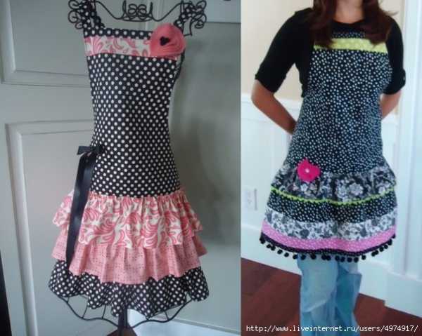 Если уровень швейного мастерства выше уровня «для чайников» или есть навыки вязания спицами и крючком, можно попробовать сделать что-нибудь более сложное и оригинальное, а также более нарядное, ведь не обязательно фартук должен быть только один.