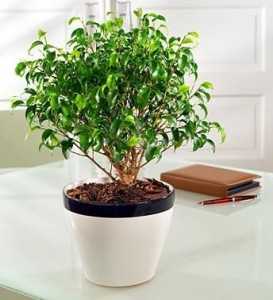 Санитар воздуха. Совершенно непритязателен, цветет мелкими миленькими белыми цветочками. Он, как губка, высасывает из воздуха примеси вредных веществ, пыли, отдавая взамен чистый кислород. Не опасен, даже если пожевать листок.