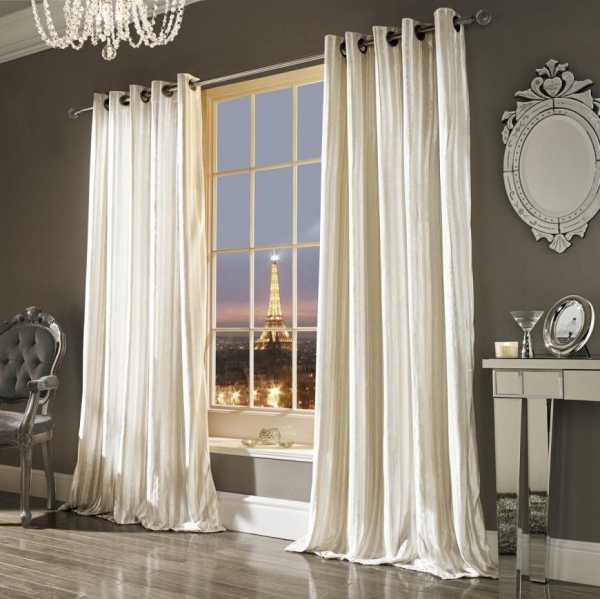 - Типом крепления. Это зависит от ткани. Легкие занавески вешают на тонкую тесьму. Для массивных изделий применяются крепления на петлях и кольцах. На карниз в виде трубы вешают тяжелые варианты на люверсах.