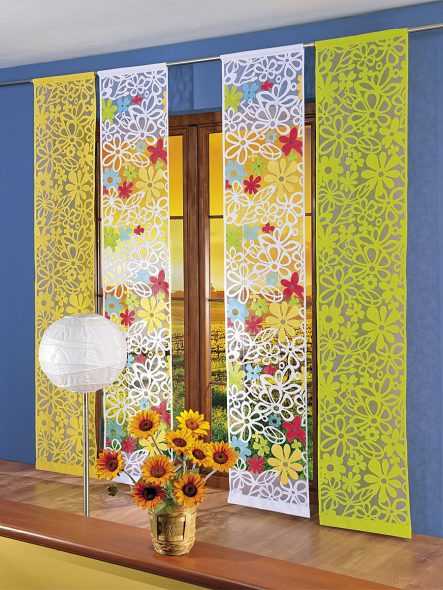 Полотна прекрасно гармонируют почти во всех помещениях. Их применяют в домах и квартирах. Ими декорируют окна в офисах, гостиницах, кафе и ресторанах. Также изделиями украшаются дверные проемы и стены.