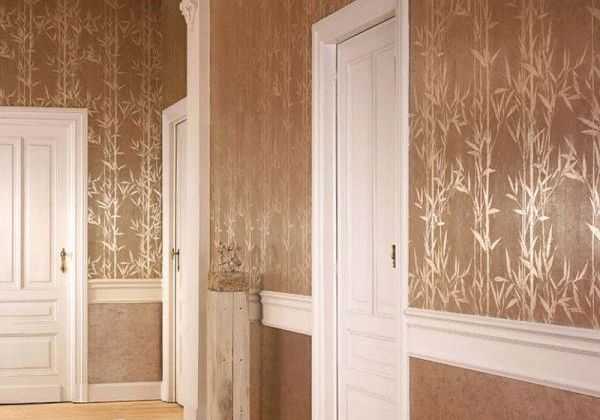- натуральные. Очень качественные. Состоят либо из бамбука, либо тростника, либо пробкового дерева. Экологически чистые, потому не могут вызвать аллергию. Обладают водонепроницаемостью, устойчивостью к трению, что типично для узкой прихожей. Но имеют свои минусы в виде высокой цены, маленького выбора расцветок и необходимости обратится к специалисту для монтажа. Взгляните на фото бамбуковых обоев;