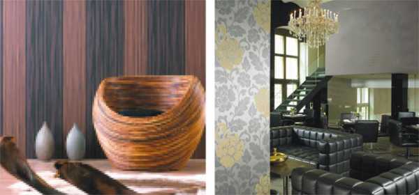 Декоративность. Любители необычных интерьерных решений, скорее всего, отдадут должное металлическим обоям под золото, серебро или бронзу, покрытую благородной патиной. Великолепный металлический блеск покрытий позволит оформить исключительный и неповторимый интерьер. Металлизированное покрытие стен создает в помещении атмосферу богатства и роскоши. Ими обычно оклеивают парадные помещения: столовые, гостиные и холлы.