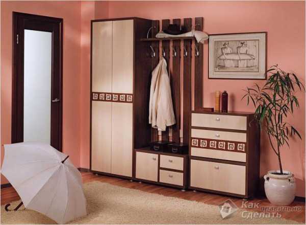 — коричневый цвет действует успокаивающе и позволяет создать строгий, стильный и благородный интерьер, в прихожей хорошо смотрится при достаточном освещении и в сочетании с бежевым, жёлтым или светло-зелёным;