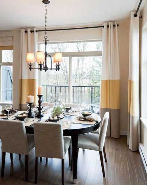 Лично мне нравятся полупрозрачные или светлые занавески, также хороши жалюзи или римские шторы. Помните и о цветах: красный способствует пробуждению аппетита, в то время как синий, наоборот, его подавляет.