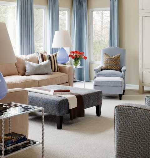 - фактуру и цвет мягкой мебели, стоящей в гостиной.