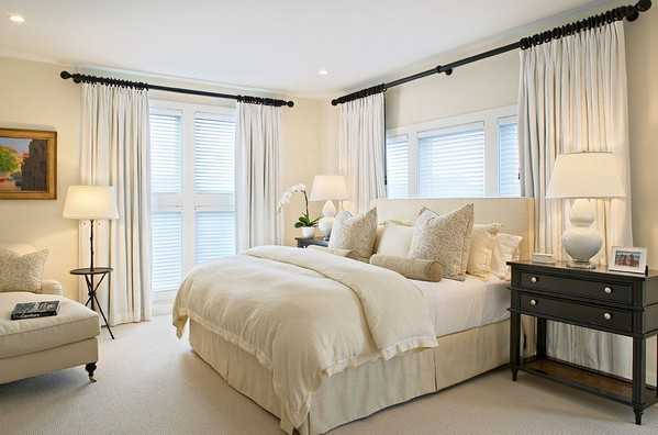 - Не оставляйте без внимания стилистические особенности помещения. Если спальня выполнена в восточной стилистике, купите шторы из парчи. Для классических спален подходят изделия с ламбрекеном.