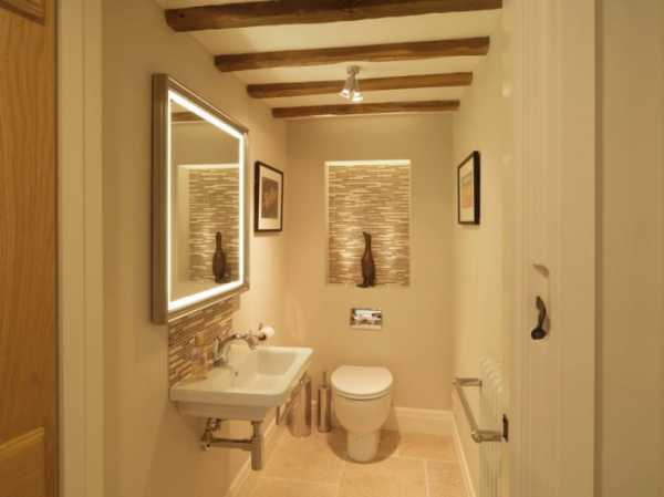 Если размеры помещения позволяют, то можно оборудовать туалет миниатюрным рукомойником. Проявите фантазию — небольшая зеркальная панель придется как нельзя кстати. А если еще снабдить ее акцентированной подсветкой, то и вовсе в туалете можно добиться удивительно приятной атмосферы.
