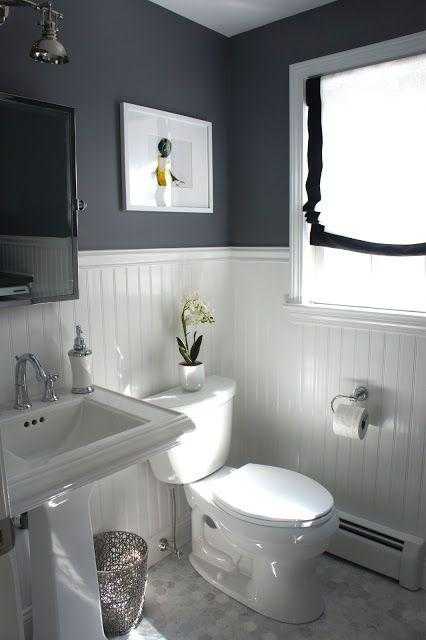 Черно-белый интерьер маленького туалета сочетается на контрасте. Белым может быть потолок и пол, а стены уложены черно-белой плиткой елочкой или в шахматном порядке. Комбинации и пропорции варьируются по-разному.