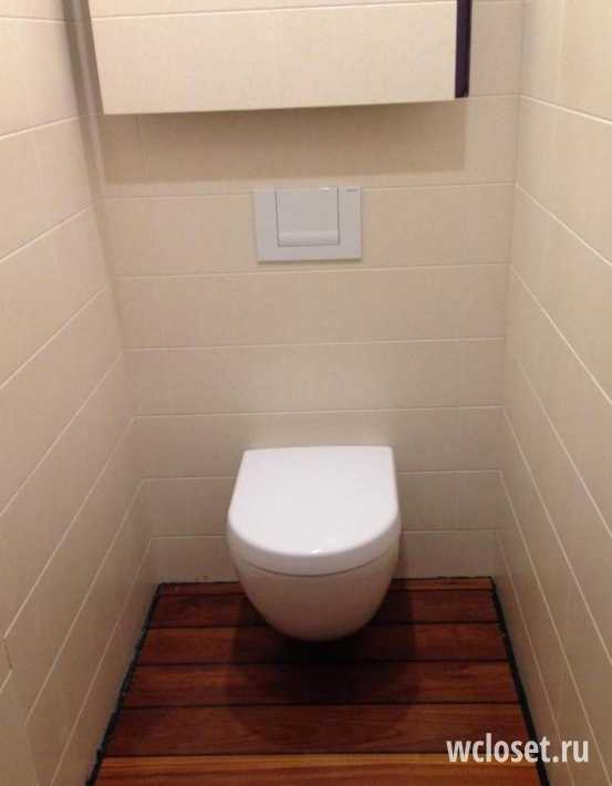 Трудно представить туалет без каких-либо аксессуаров. Естественно, их необходимо где-то разместить. Варианты с размещением небольших шкафчиков на задней стенке особо популярны. Приведем примеры с реальными фото.