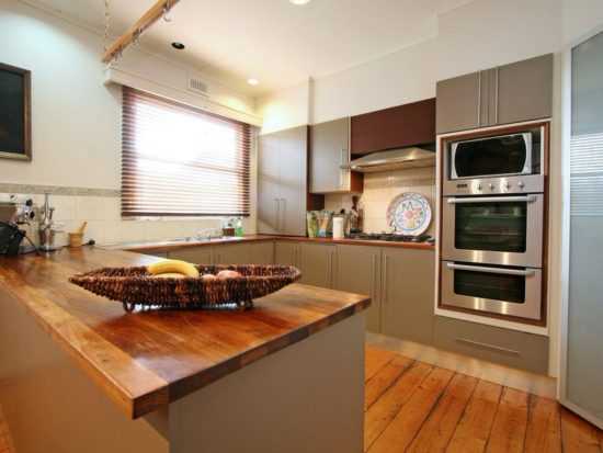 - лиственница обладает важным преимуществом – устойчивость к влаге. Эта древесина использовалась при возведении фундаментов венецианских домов, для строительства кораблей, потому и пар на кухне она выдержит;