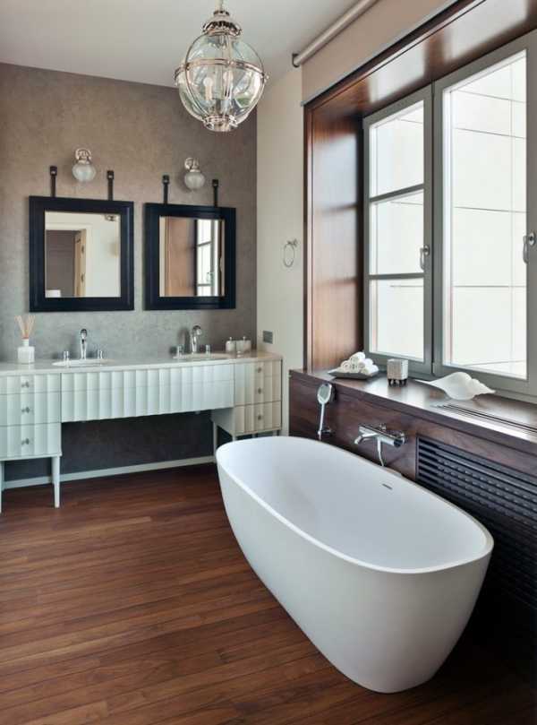 Торшеры – еще одно решение для того чтобы осветить верх ванной комнаты. Правда, их высоту нужно регулировать, иначе слишком яркий свет будет раздражать глаза. Лучше всего, если уровень света будет где-то рядом с лицом человека среднего роста, а точнее, на уровне подбородка.
