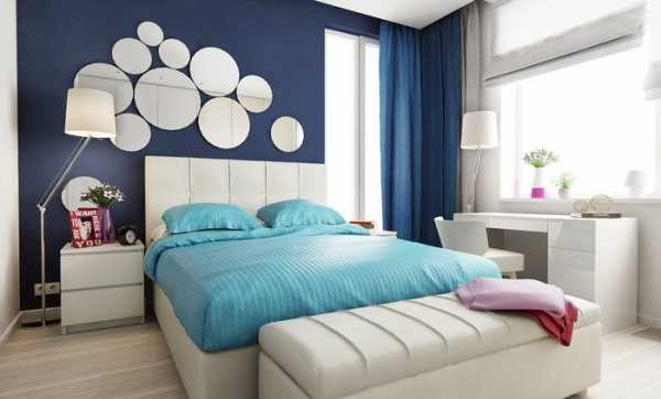 Интерьер для молодой семьи и их белоснежного кота. Благодаря устоявшимся ассоциациям (вода и небо) синий настраивает на созерцательный лад, успокаивает и замедляет бег мыслей. Если вы хотите избавиться от напряженного возбуждения после работы, попробуйте украсить спальню синим. А чтобы цвет не смотрелся казенно, поддержите его теплыми коричневыми деталями. И белый цвет тоже подчеркивает достоинства цвета, сглаживая углы. Выбирая между сном и развлечением, рано или поздно вы придете к заключению, что отдых важнее. А потому уберите из спальни телевизор, хотя бы в качестве эксперимента. Розовый