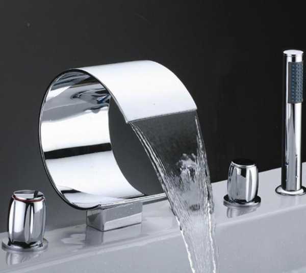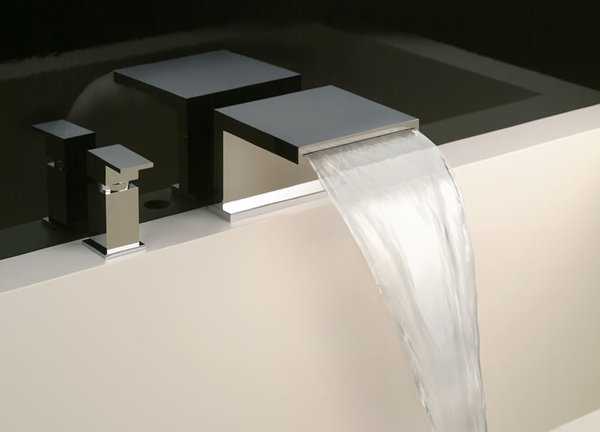 Каскадный излив встречается у моделей прогрессивного современного дизайна. Помимо необычного внешнего вида, такой излив обладает большей пропускной способностью и позволяет быстрее наполнить ванну по сравнению с обычными смесителями.