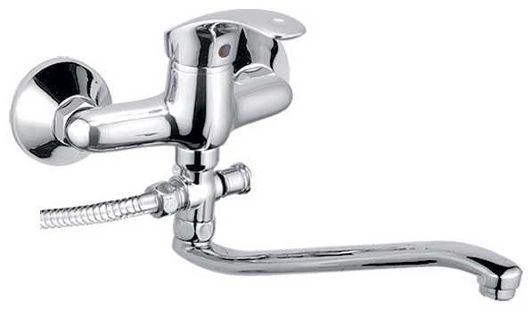 Общий смеситель для ванны и умывальника удобнее выбирать с длинным, плоским и немного загнутым вверх изливом. Это дает дополнительную функциональность, увеличивая высоту между изливом и раковиной и позволяя мыть и наполнять водой большие емкости. Такой излив можно купить и отдельно от смесителя, чтобы заменить менее удобный старый.