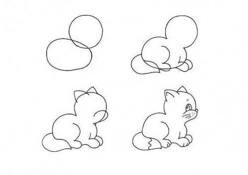 - Теперь определяем месторасположение мордочки (круг), а вокруг тела-овала намечаем шею и лапки. Подушечки тоже пока будут в виде кружков.