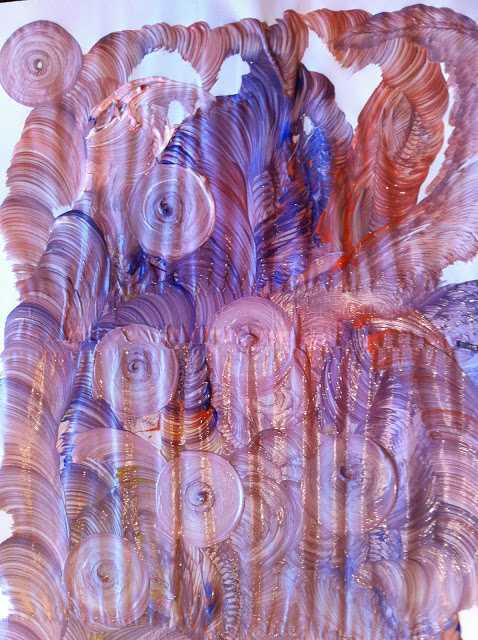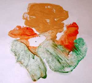 V. Брызги: интересные эффекты и изображения могут получиться, если сбрызгивать краску с кисточки или зубной щётки на лист бумаги. То же самое можно проделывать, положив на лист какой-либо предмет. Тогда вокруг предмета будет «точечный фон», а изображение предмета будет бесцветным.