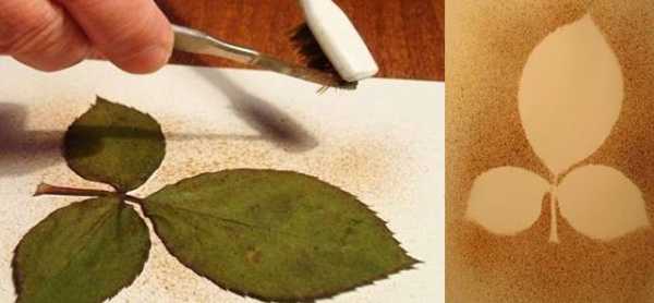 Отпечатки можно делать и природными материалами, например, еловой веткой или большим листом от растения: