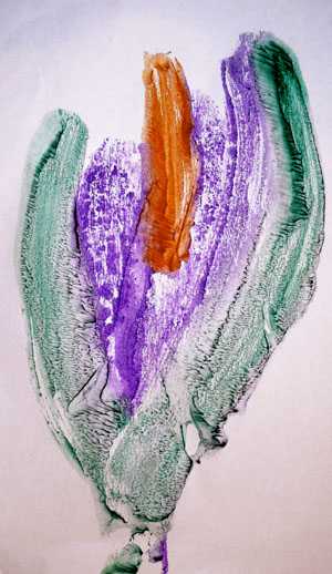Рядом рисунок, выполненный по этому же принципу, только без трафарета, а вместо марли использовался полиэтиленовый кулёк;