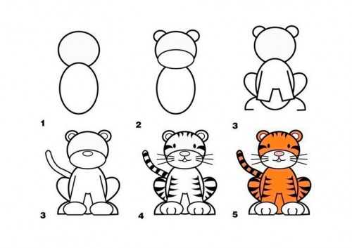При помощи таких картинок малышу, да и взрослому тоже, будет намного проще понять структуру изображения и нарисовать его по шагам.