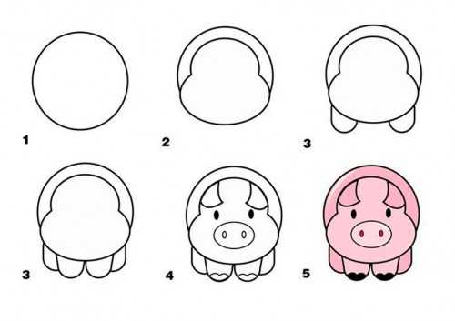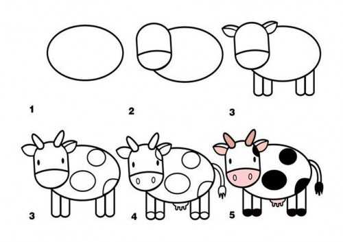 Приступать к такому рисованию можно уже в возрасте 3-4 лет, когда ребенок уже осознанно относится к занятиям. Для начала следует выбирать картинки попроще, на которых понятно описывается, как из простейших геометрических фигур можно получить, например, свинку или черепашку. Малышам важен и последний этап рисования – раскрашивание картинки.