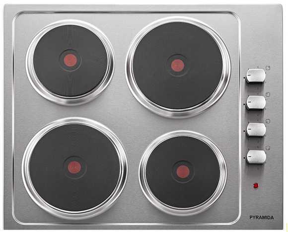 Hansa BHEI 60130010 – электропанель классического вида из нержавеющей стали. Содержит 2 пары чугунных «блинов», различающихся диаметром и мощностью. Датчик остаточного нагрева не позволит обжечься неостывшей электроконфоркой.