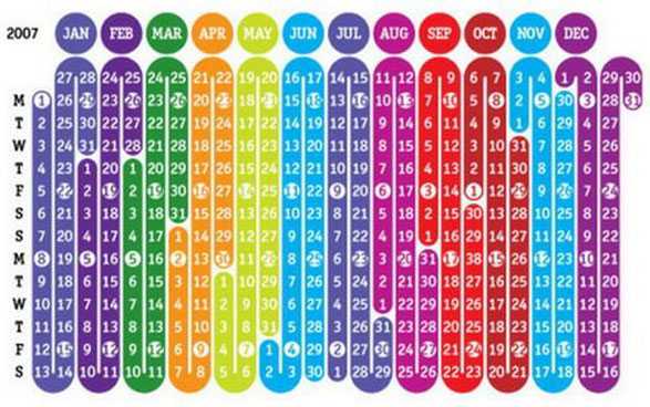 Впрочем, дизайнер по имени Дэвид Уэзерхед (David Weatherhead) взял на себя смелость исправить эту несправедливость, — его проект Round & Round calendar не только круглый, но еще и вечный календарь, в отличие от всех прочих.